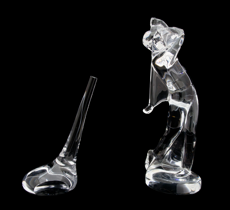 comprising a Baccarat golfer and a Tiffany golf paperweight.