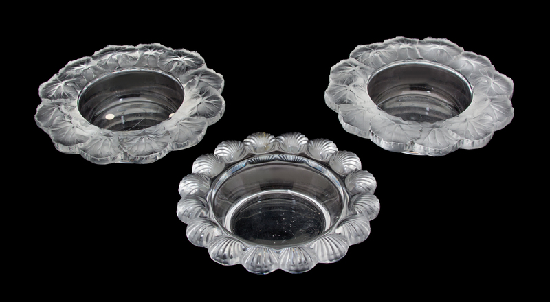 Three Lalique Frosted and Molded Glass Bowls