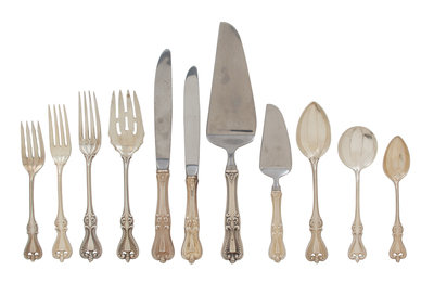 in the Old Colonial pattern, comprising;33 salad forks,16 dessert spoons,16 dinner forks,15 french hollow knives,15 teaspoons,10 round bowl soup spoons, 2 large french hollow knives,a pie slicer,a serving fork,a cheese knife;110 items in total