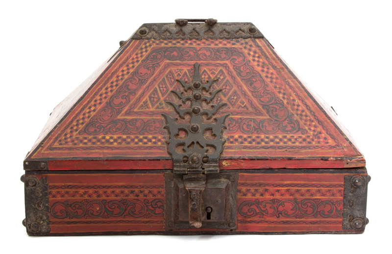 A Malabar Polychromed and Brass Mounted Dowry Box
