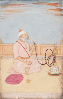 A Miniature Mughal Painting of a Hookah Smoker