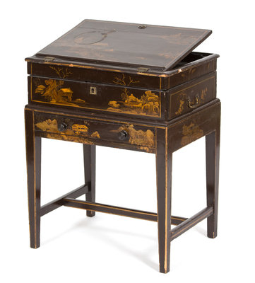 A Chinese Brown and Gilt Lacquer Writing Desk on Stand