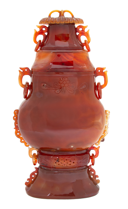 A Chinese Carved Carnelian Hardstone Urn