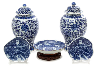 A Collection of Five Pieces of Asian Blue and White Porcelain
