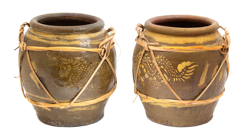 A Pair of Japanese Brown and Ochre Glazed Ceramic Egg Jars
