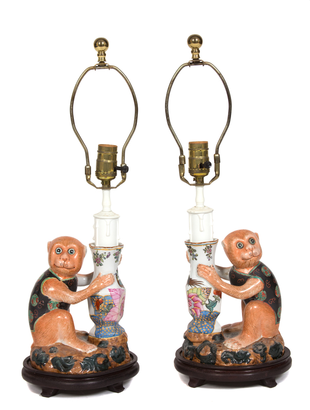 having a squatting monkey holding a vase, in the tobacco leaf pattern.