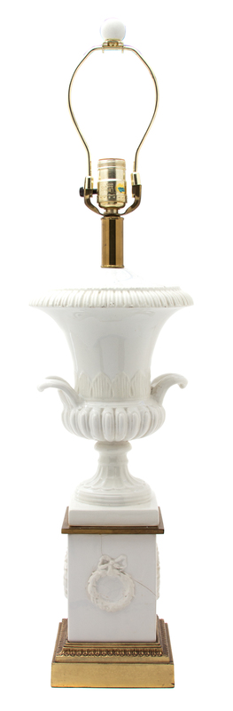 A Campana Urn-Form White Glazed Ceramic Table Lamp