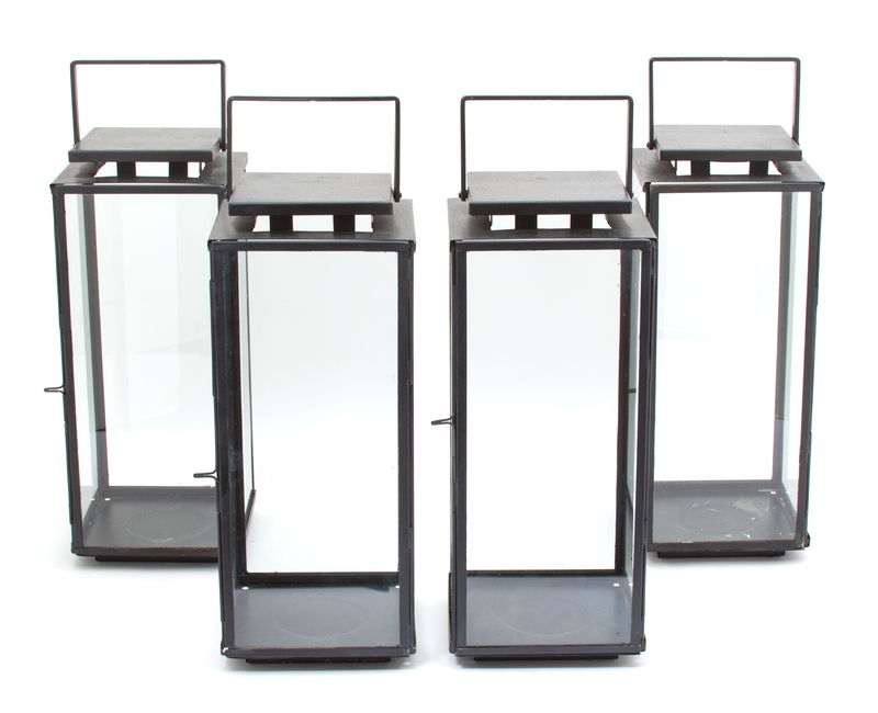 Four Glazed Metal Table Lanterns