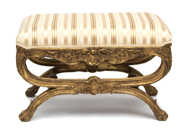 An Italian Rococo Style Painted and Parcel Gilt Curule-Form Tabouret
