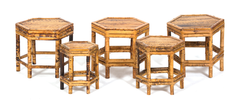 A Collection of Five Bamboo Occasional Tables of Graduated Sizes