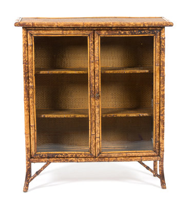 A Victorian Style Bamboo, Black Lacquer and Japanned Bookcase