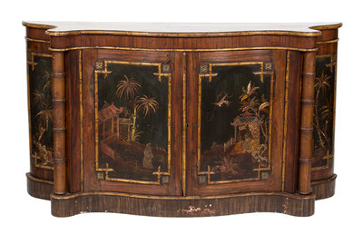 having chinoiserie motif doors and faux bamboo details.