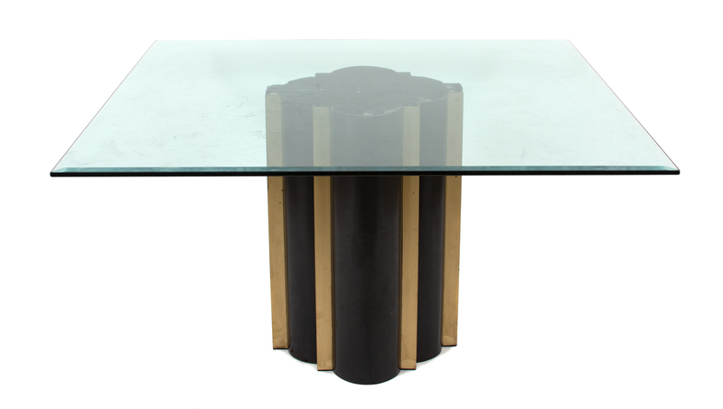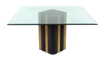 A Mid-Century Modern Bronze Two-Pedestal Dining Table with Glass Top