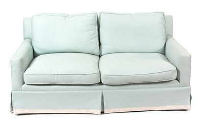 A Contemporary Blue Upholstered Two-Cushion Loveseat