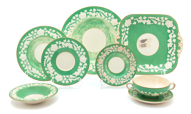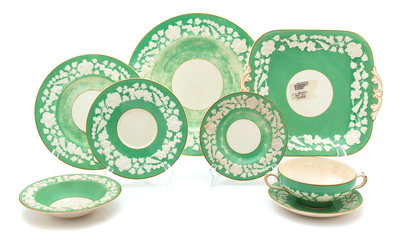 by George Jones & Sons, in the Rhapsody pattern, comprising 22 bread plates, 11 salad plates, 7 saucers, and a serving plate; 41 items total.
