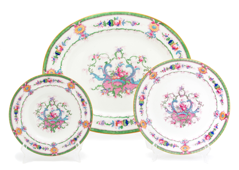 by Spode, comprising 12 shallow bowls, seven dinner plates and one platter; 20 items total.