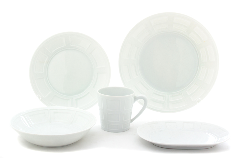 in the Naxos pattern, comprising:5 dinner plates5 salad plates6 coupe soup bowls8 mugs4 saucers2 oval serving dishes;30 pieces total.