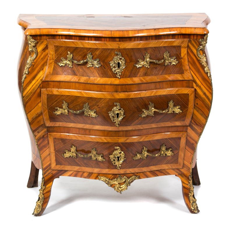 A Louis XV Style Gilt Bronze Mounted Kingwood Bombe Commode