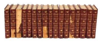 Philadelphia: George Barrie & Son. Edition de E'Etoile, numbered 108 of 200 copies. Printed on Japanese vellum paper, 17 volumes. Leatherbound with 6 sectioned gilt binding and red leather boards stamped with gilt initials.