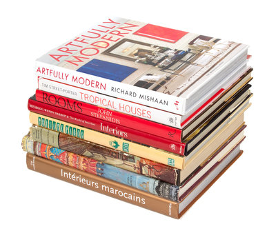 The Making of the Royal Pavilion Brighton, by John Morley, David R. Godine, Boston 1984; The Illustrated History of Furnishing, by Mario Praz, George Braziller, NY 1964; Interiors, by Min Hogg and Wendy Harrop and The Work of Interiors 1988; Private Paris, by Marie-France Boyer, Abbeville Press, NY1988; Rooms Design and Decoration, by John Stefanidis, Rizzoli, NY 1988; Tropical Houses, by Tim Street-Porter, Clarkson Potter Publishers, NY 2000; Interieurs Marocains, by Lisa Lovatt-Smith, Tashen, Koln 1995; Artfully Modern, by Richard Mishaan, The Monacelli Press. (8)