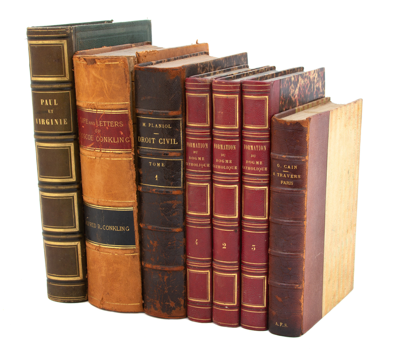 CAIN, Georges. A Travers Paris -- Essai Sur la Formation du Dogme Catholique Vols 2, 3 & 4 -- PLANIOL, Marcel Droit Civil Vol 1 -- CONKLING, ALFRED The Life and Letters of Roscoe Conkling --SAINT-PIERRE, Bernardin de Paul et Virginie.