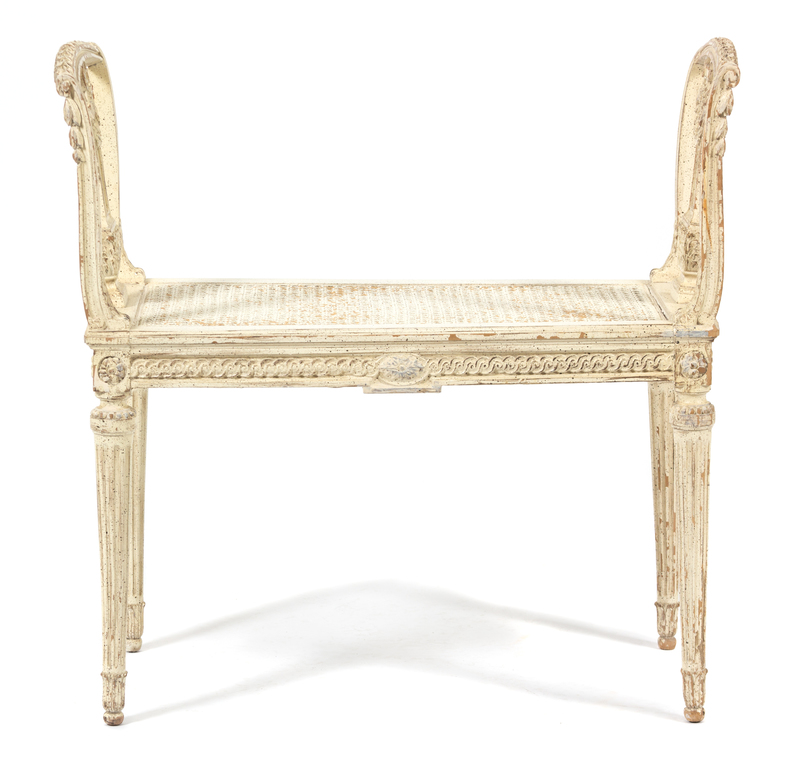 A Louis XVI Style Carved and Painted Cane Seat Window Bench