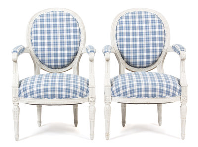 A Pair of Louis XVI Style Oval Back Fauteuils