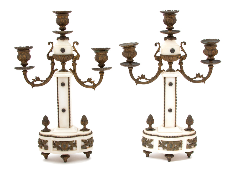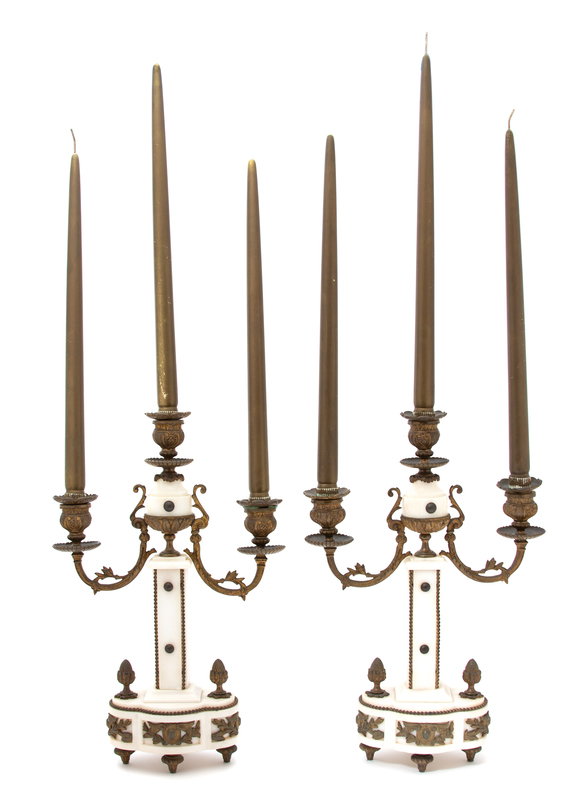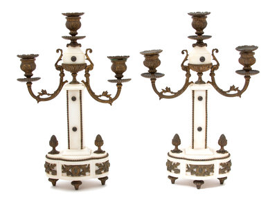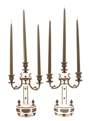 A Pair of Louis XVI Style Gilt Bronze Mounted White Marble Candelabra