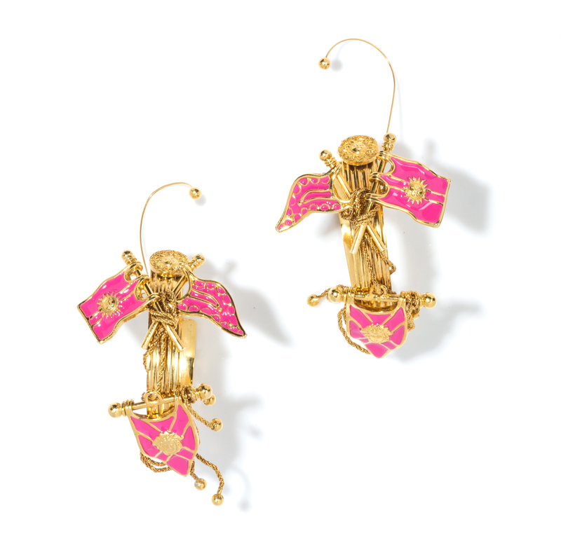 A Pair of Gianni Versace Pink Enamel Flag Oversized Earclips,