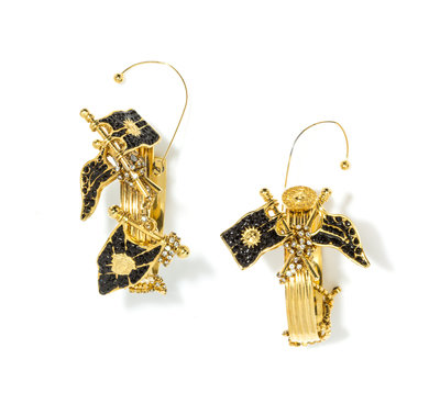 A Pair of Gianni Versace Black Flag and Rhinestone Oversized Earclips,