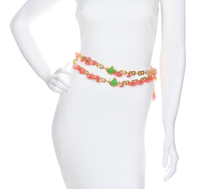 A Gianni Versace Pink Floral and Greco Link Belt,