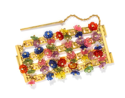 A Gianni Versace Multicolor Floral and Greco Link Bracelet,