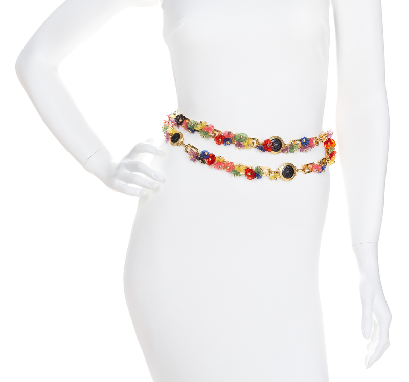 A Gianni Versace Multicolor Floral and Greco Link Belt,