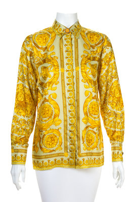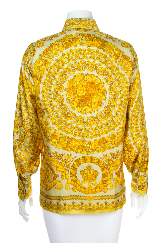 1995,"Barocco Floral" print with decorative Medusa embossed buttons at the top neck closure and cuffs and left side hidden button closure.Labeled: Gianni Versace Couture.