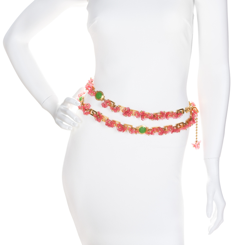 A Gianni Versace Pink Floral and Greco Link Belt,