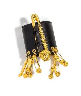 Spring/Summer 1994,with goldtone logo safety pin charms and a snap Medusa button adjustable closure. Stamped: Gianni Versace.