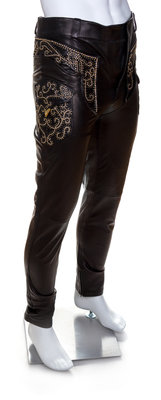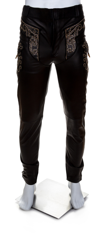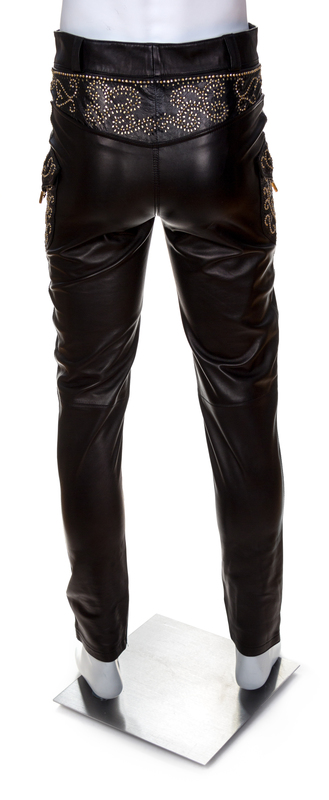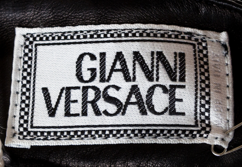 Autumn/Winter 1992-1993,with silvertone and goldtone grommet embellishment at the hips, side flap pockets and back waist, a front zip closure and a side zip hem.Labeled: Gianni Versace.