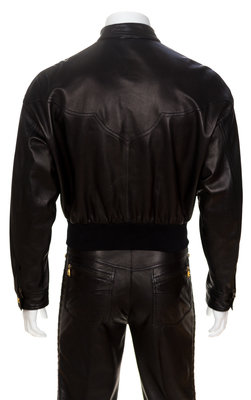 A Gianni Versace Black Leather Men's Jacket,