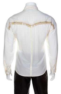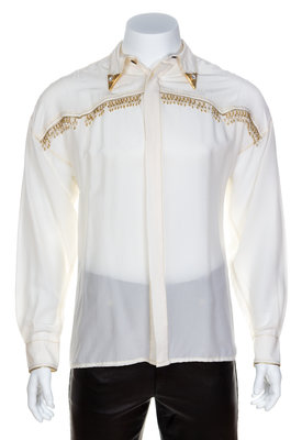 A Gianni Versace Cream Rayon and Silk Bead Embellished Men's Shirt,