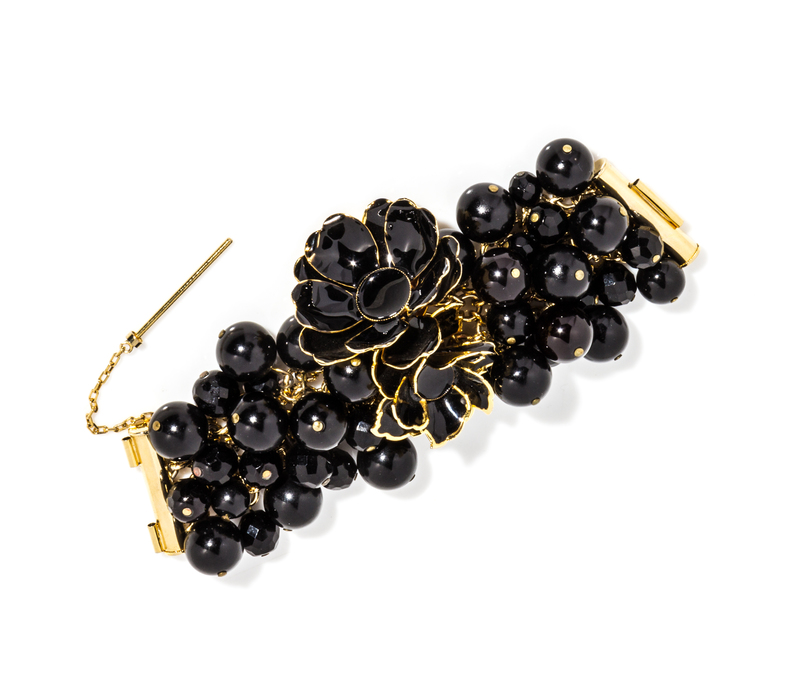 A Gianni Versace Black Bead and Floral Bracelet,