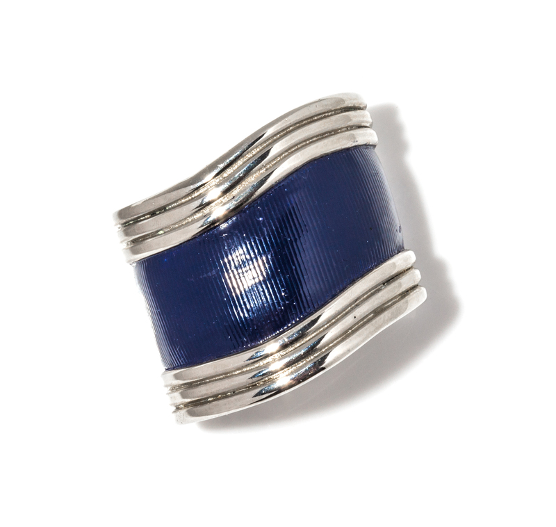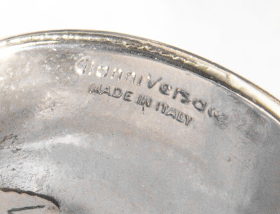 Spring/Summer 1987,silvertone with a textured enamel center.Stamped: Gianni Versace.