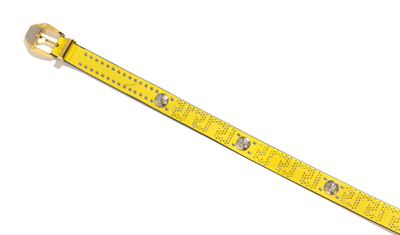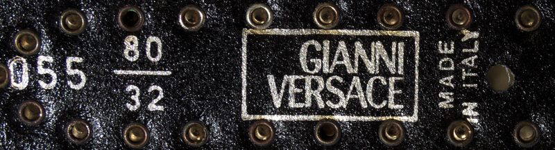 1990s,with silvertone and goldtone hardware including embossed Medusa coins and grommets.Stamped: Gianni Versace.