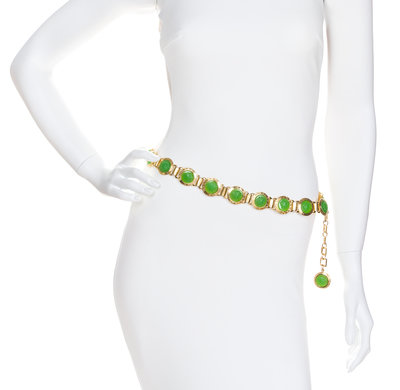 A Gianni Versace Green Embossed Medusa Link Belt,