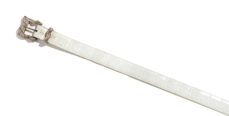 A Gianni Versace Limited Edition White Crocodile Belt with A Sterling Silver Buckle,