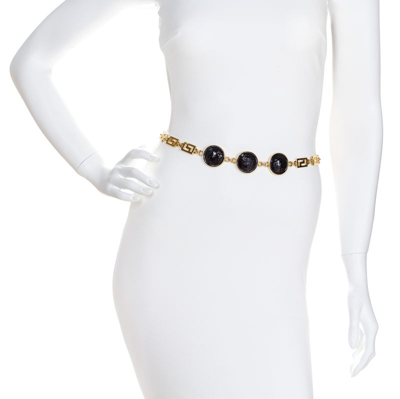 A Gianni Versace Black Medusa Medallion and Greco Link Belt,