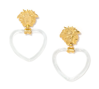 A Pair of Gianni Versace Medusa and Glass Heart Drop Earclips,