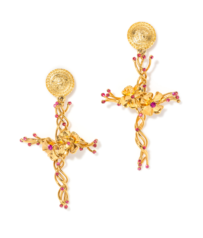 A Pair of Gianni Versace Cross Drop Earclips,