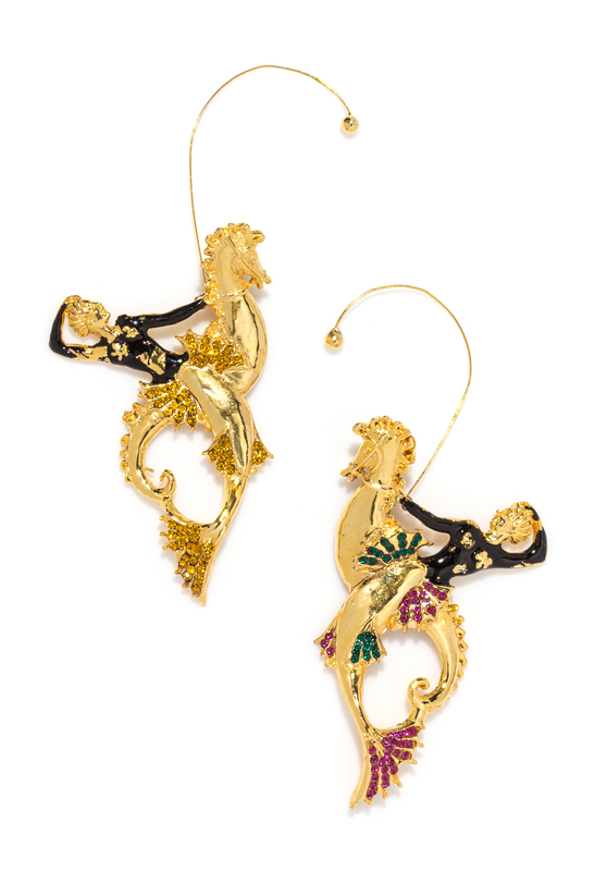 A Pair of Gianni Versace Runway Lady on a Seahorse Earclips,