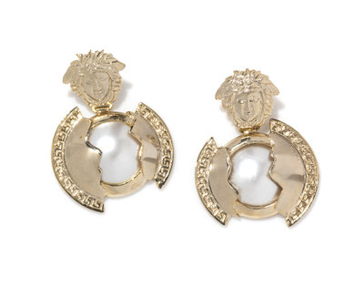 A Pair of Gianni Versace Faux Pearl and Medusa Earclips,