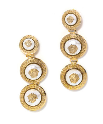 A Pair of Gianni Versace Pearl Medusa Medallion Drop Earclips,
